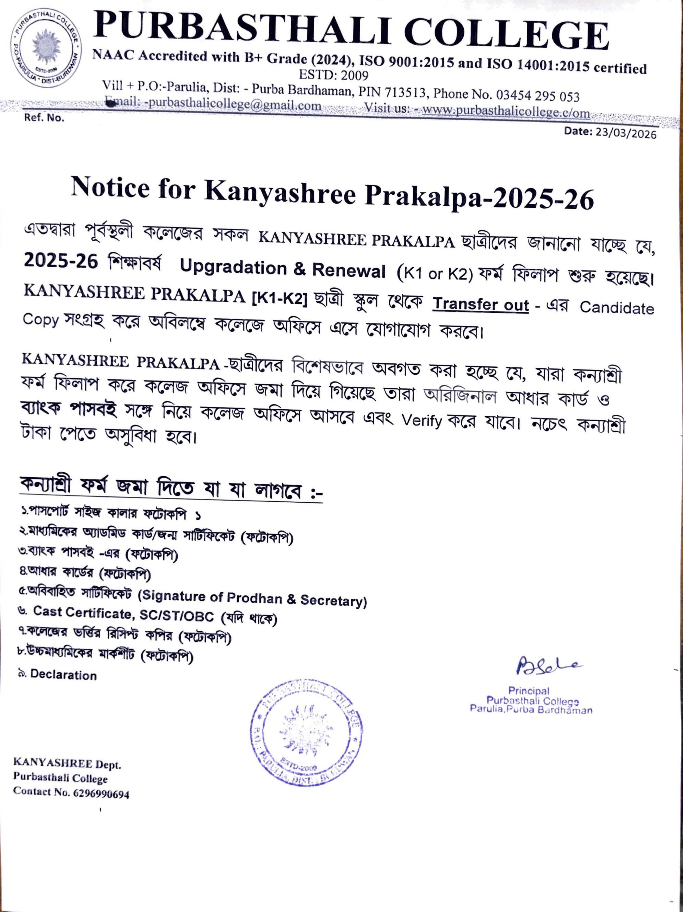 Notice for the Kanyashree applicant (K2) whose payment failed